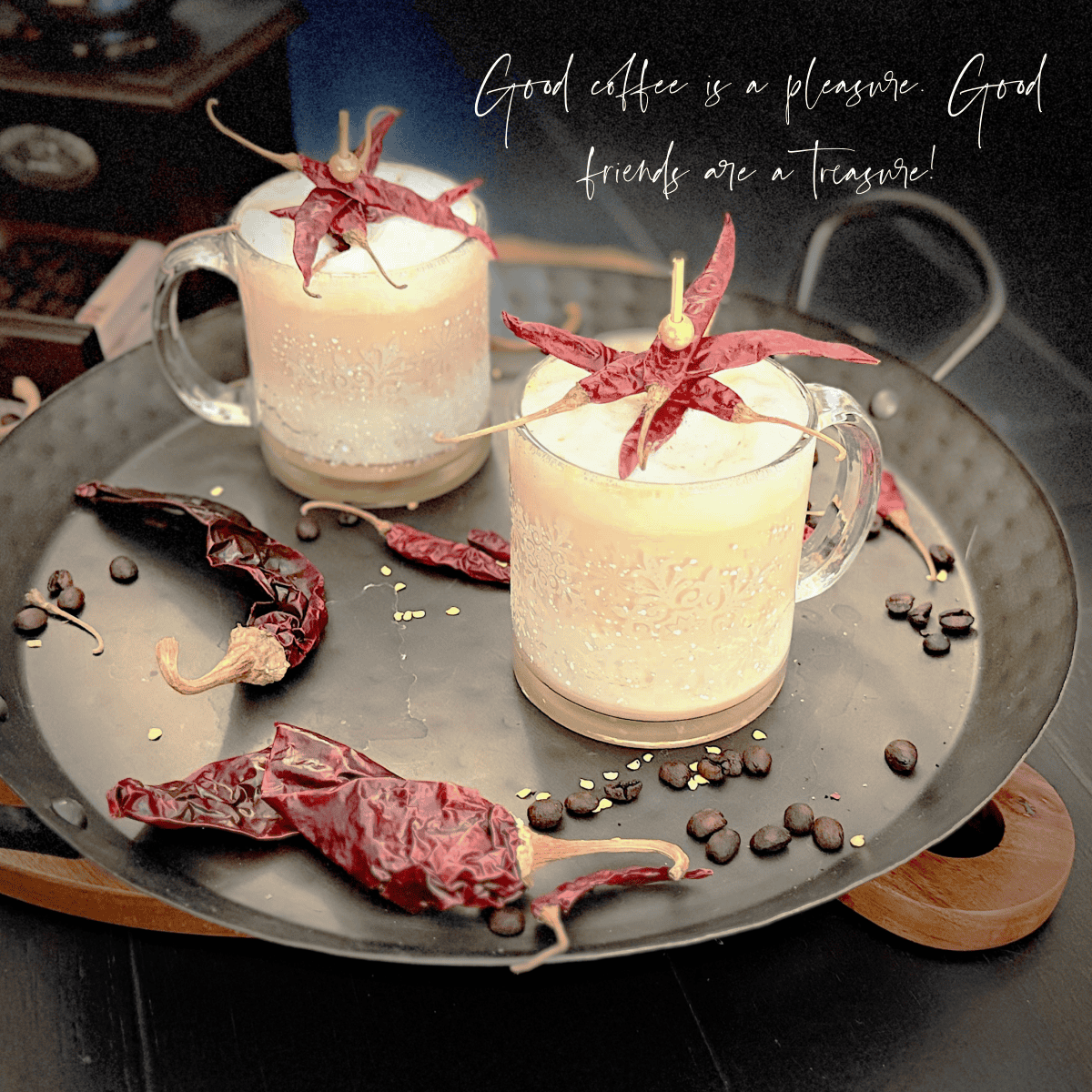 There’s a new fire on the coffee scene, and it’s lighting up the holidays. I’m proud to introduce my newest creation: Fuego Con Bourbon, a bold, creamy latte made with the latest sensation: Café Caliente Coffee with Chile.